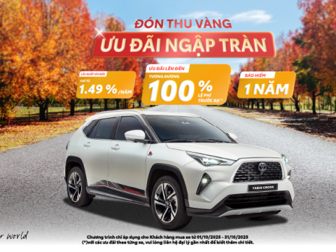 Tháng 10/2025, Toyota Việt Nam tung ra chương trình khuyến mãi "Đón Thu Vàng - Ưu Đãi Ngập Tràn" – cơ hội vàng để sở hữu những mẫu xe Toyota đẳng cấp với mức ưu đãi lên đến 90 triệu đồng cùng hàng loạt quà tặng hấp dẫn. Nhân dịp...